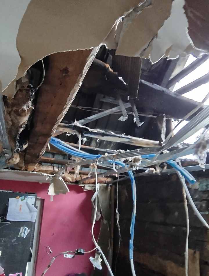 Pożar zostawił po sobie ogromne zniszczenia. Dach wymaga całkowitej wymiany. Kuchnia spłonęła doszczętnie – miejsce, które było sercem naszego domu, przestało istnieć. Pozostałe pomieszczenia zostały zalane podczas akcji gaśniczej. To, co jeszcze chwilę wcześniej było naszą codziennością, dziś jest zniszczone i trudne do rozpoznania.